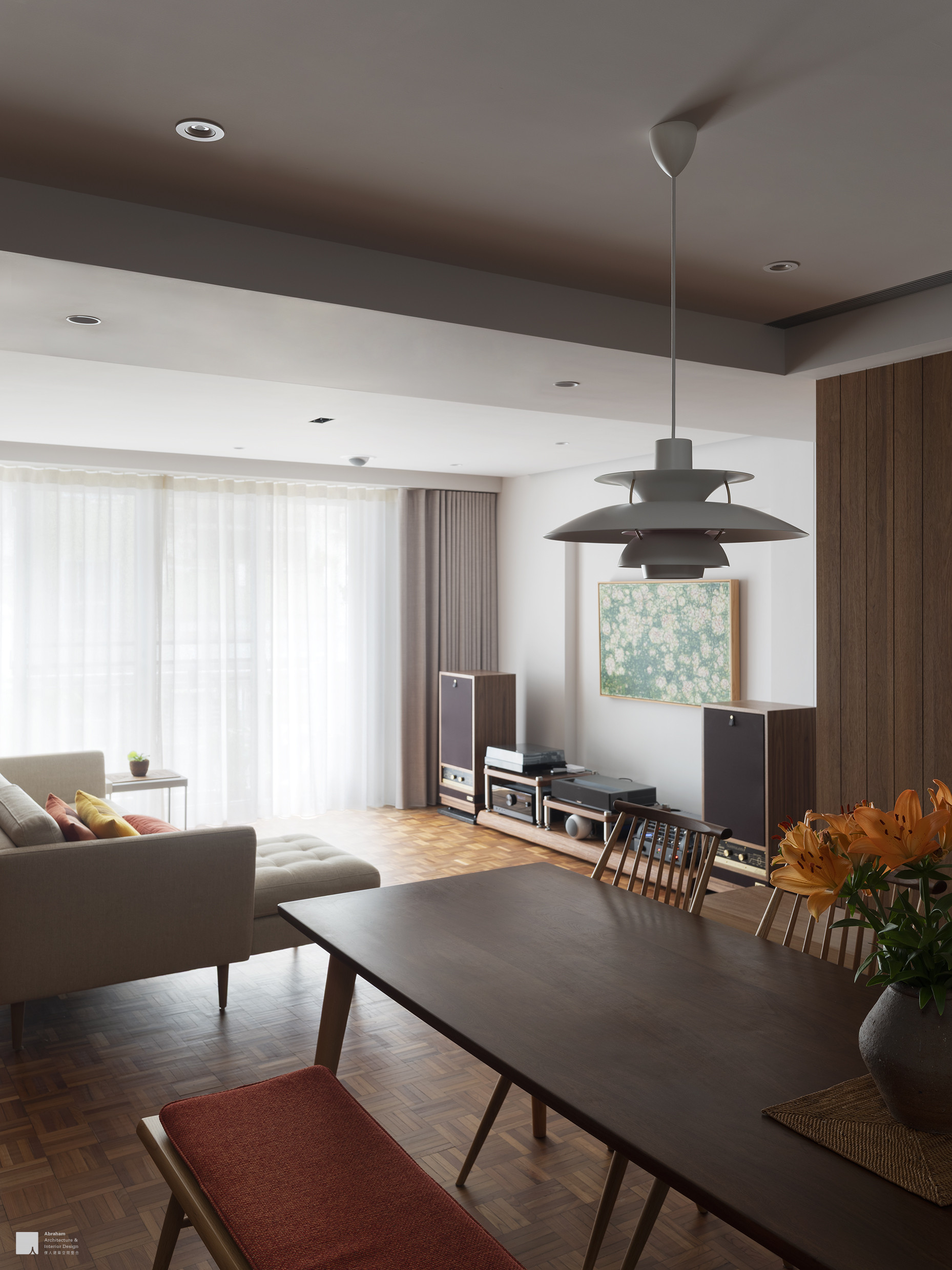 依循屋主的生活習慣與情感脈絡,重新詮釋了家的樣貌。空間歷史與物件溫度,組合成「家」的生活軌跡。保留老木地板的溫度、融合古典與現代的語彙,成為一家人最自然的生活風景。